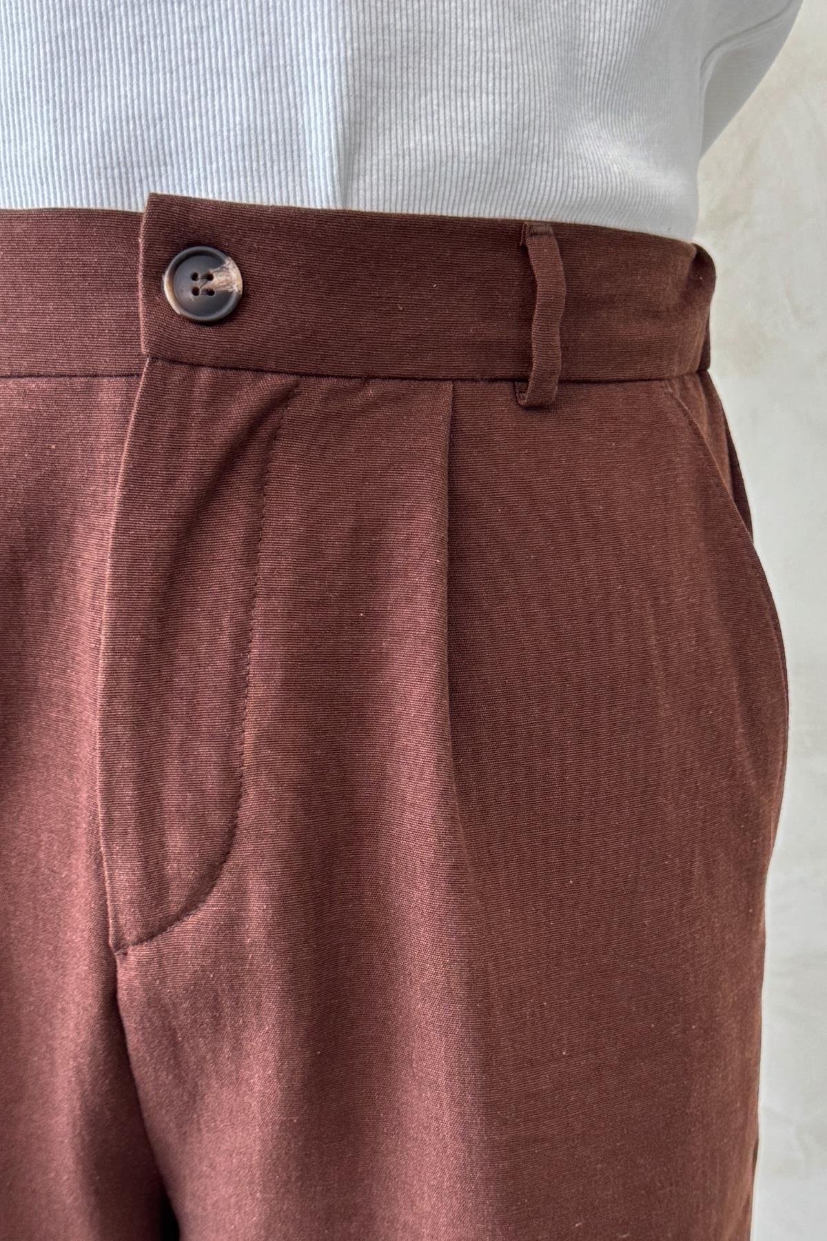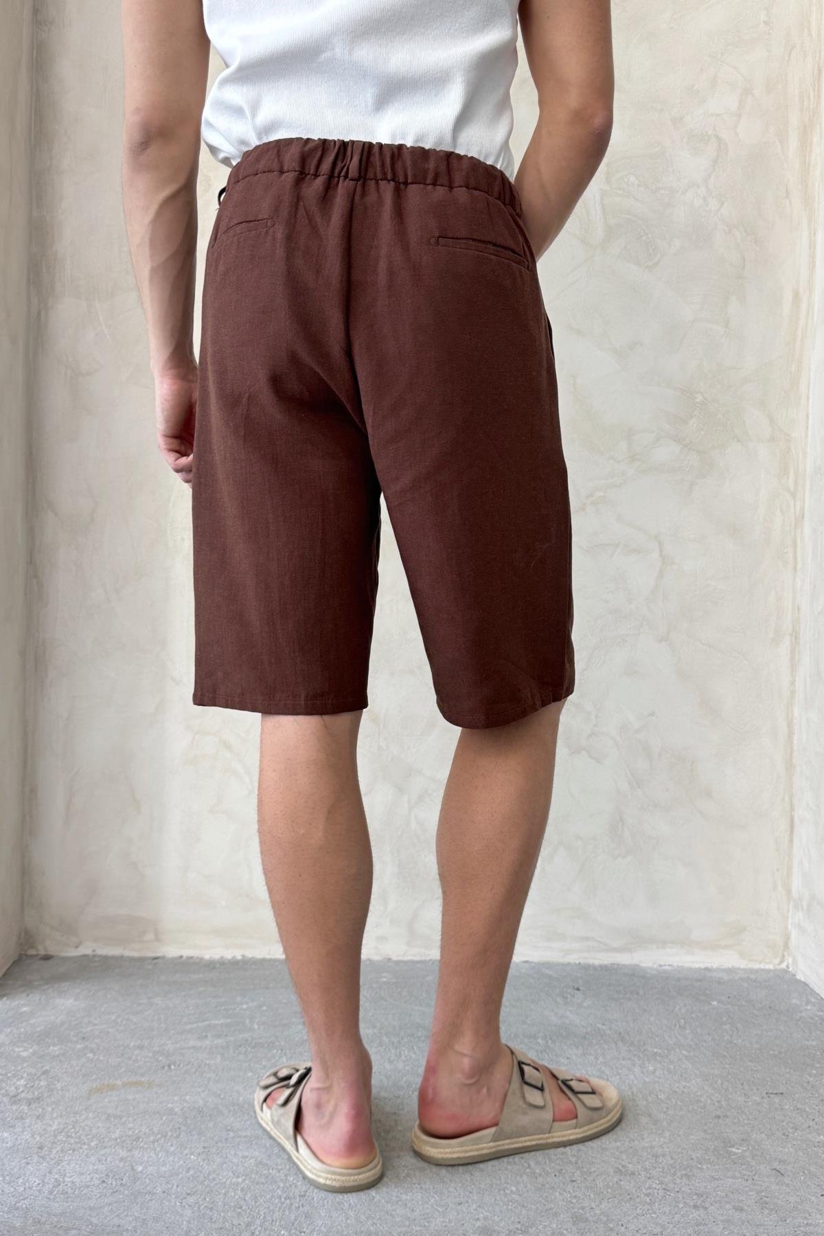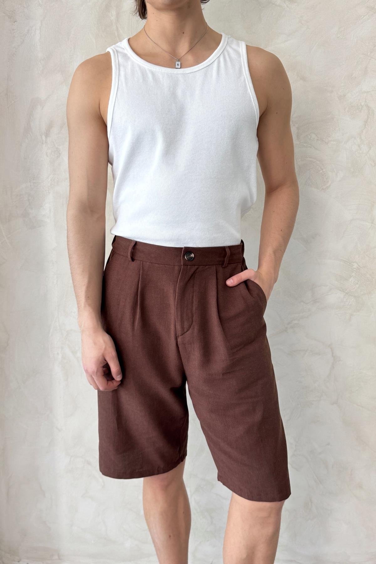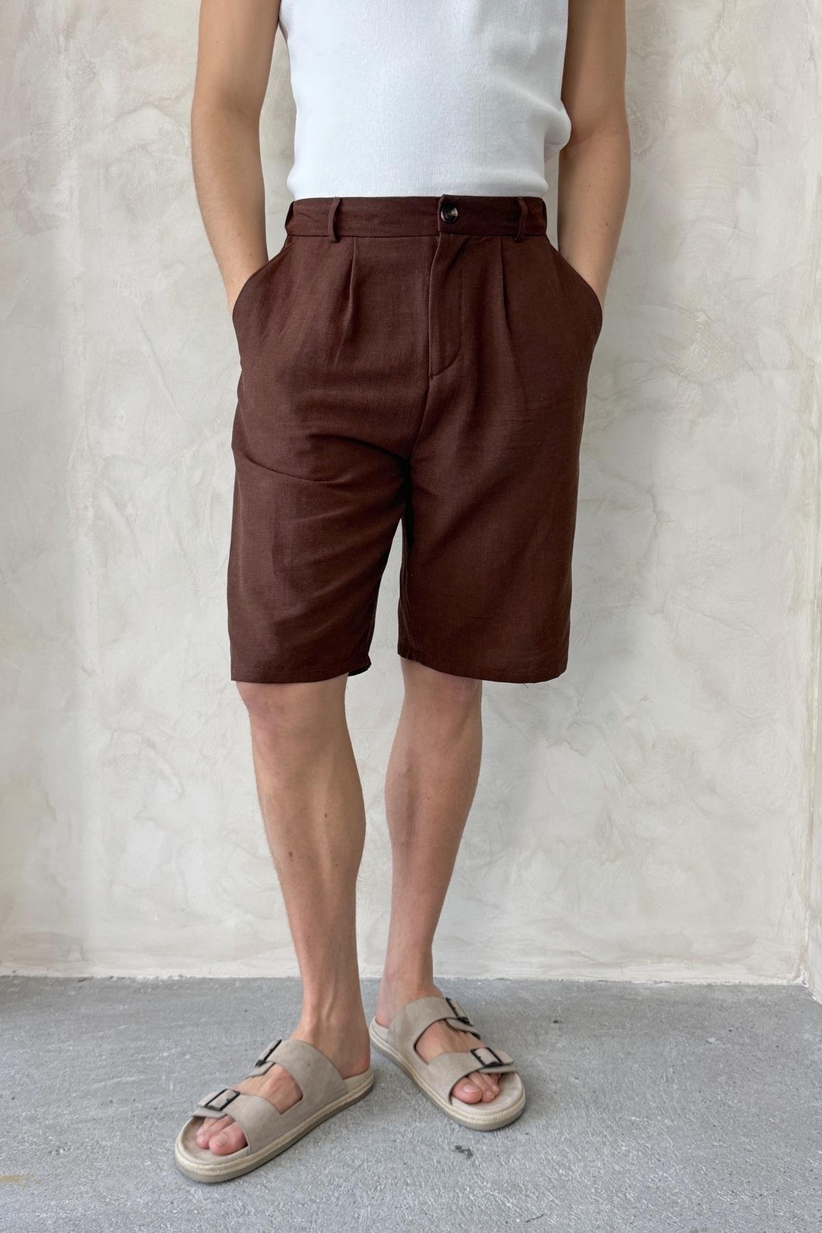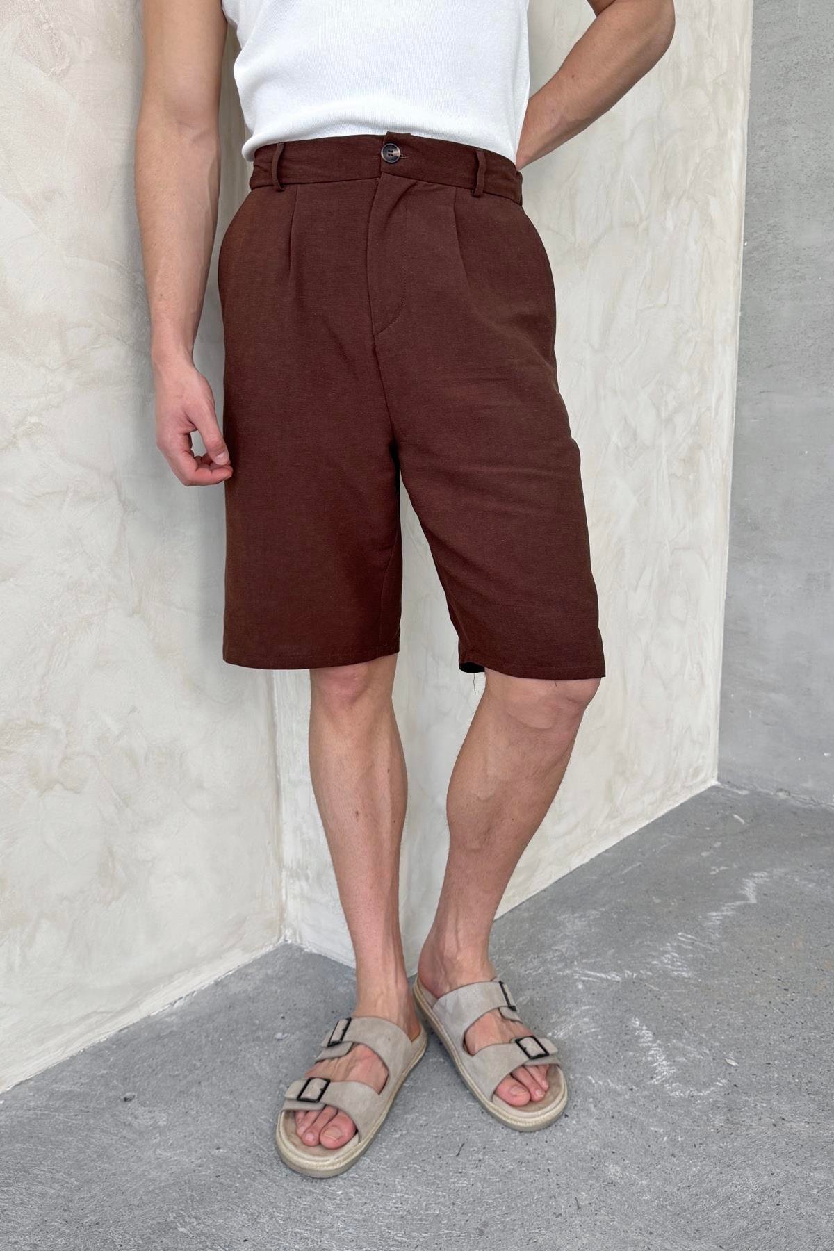 Erkek Pileli Baggy Keten Şort Kahverengi (HY25YE07005KAHVES)