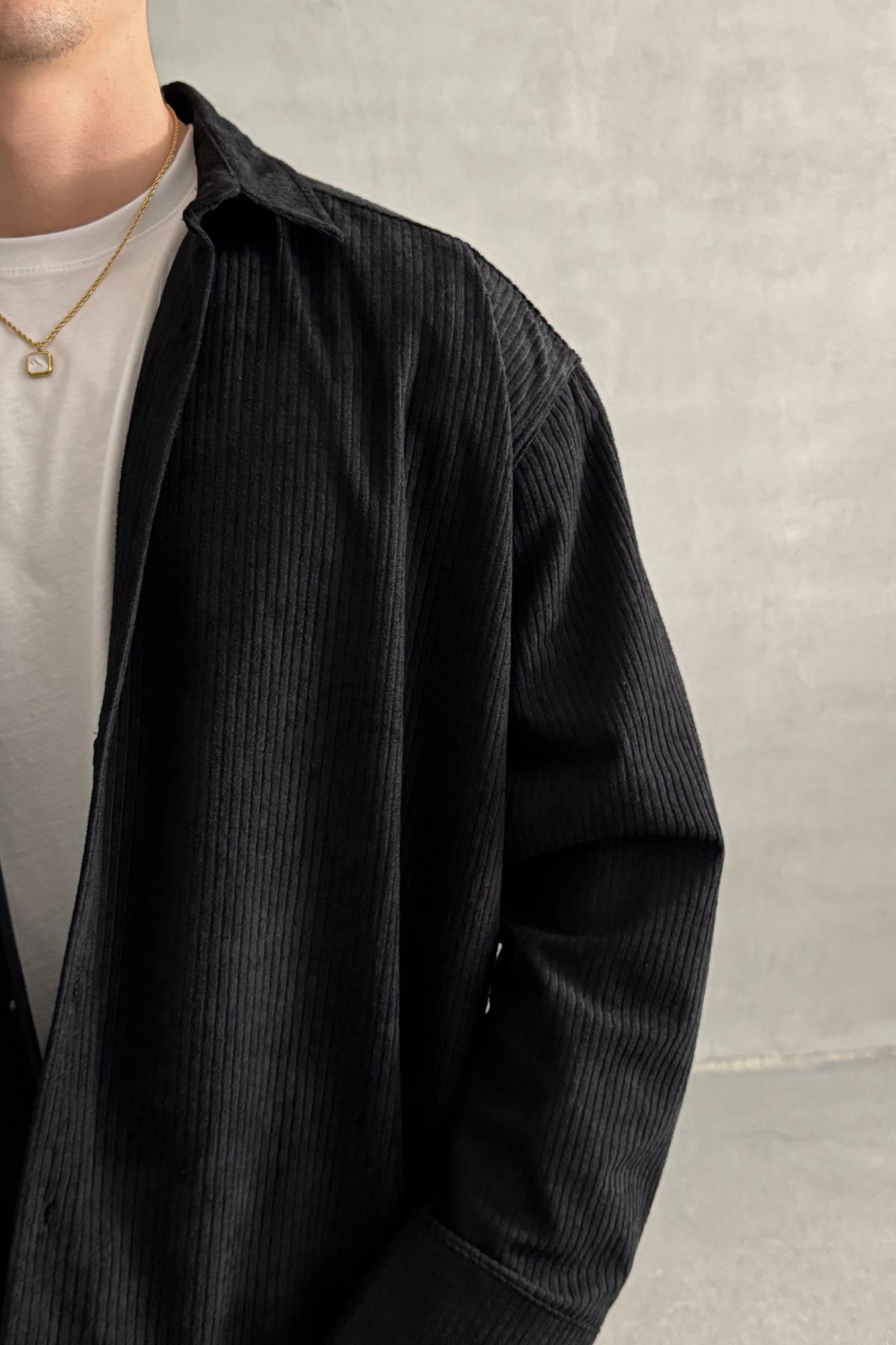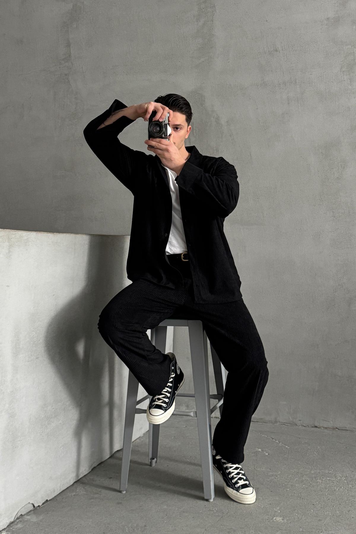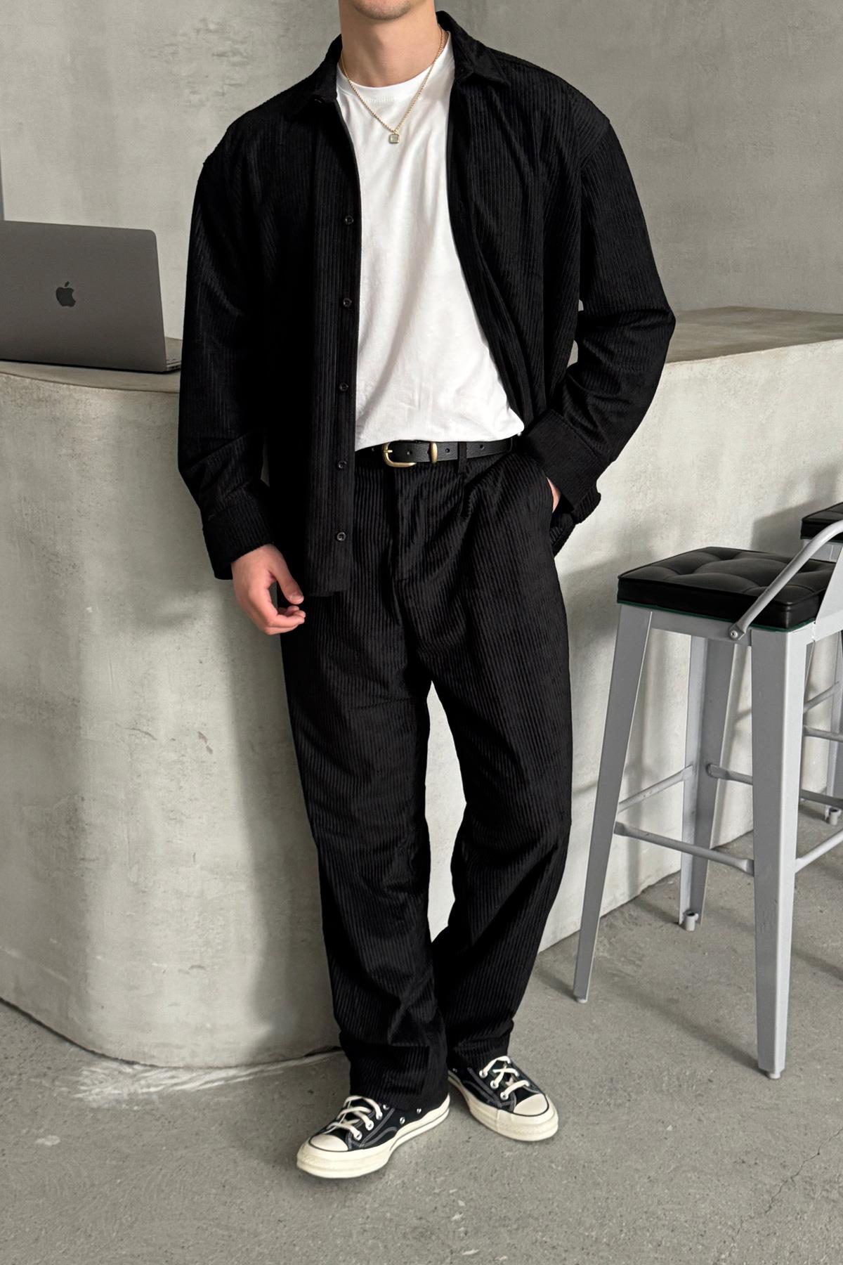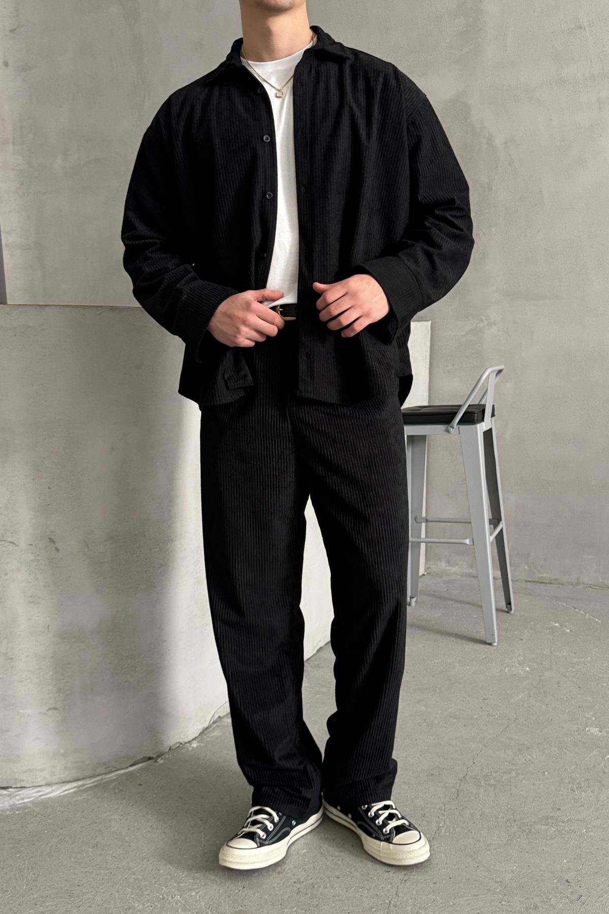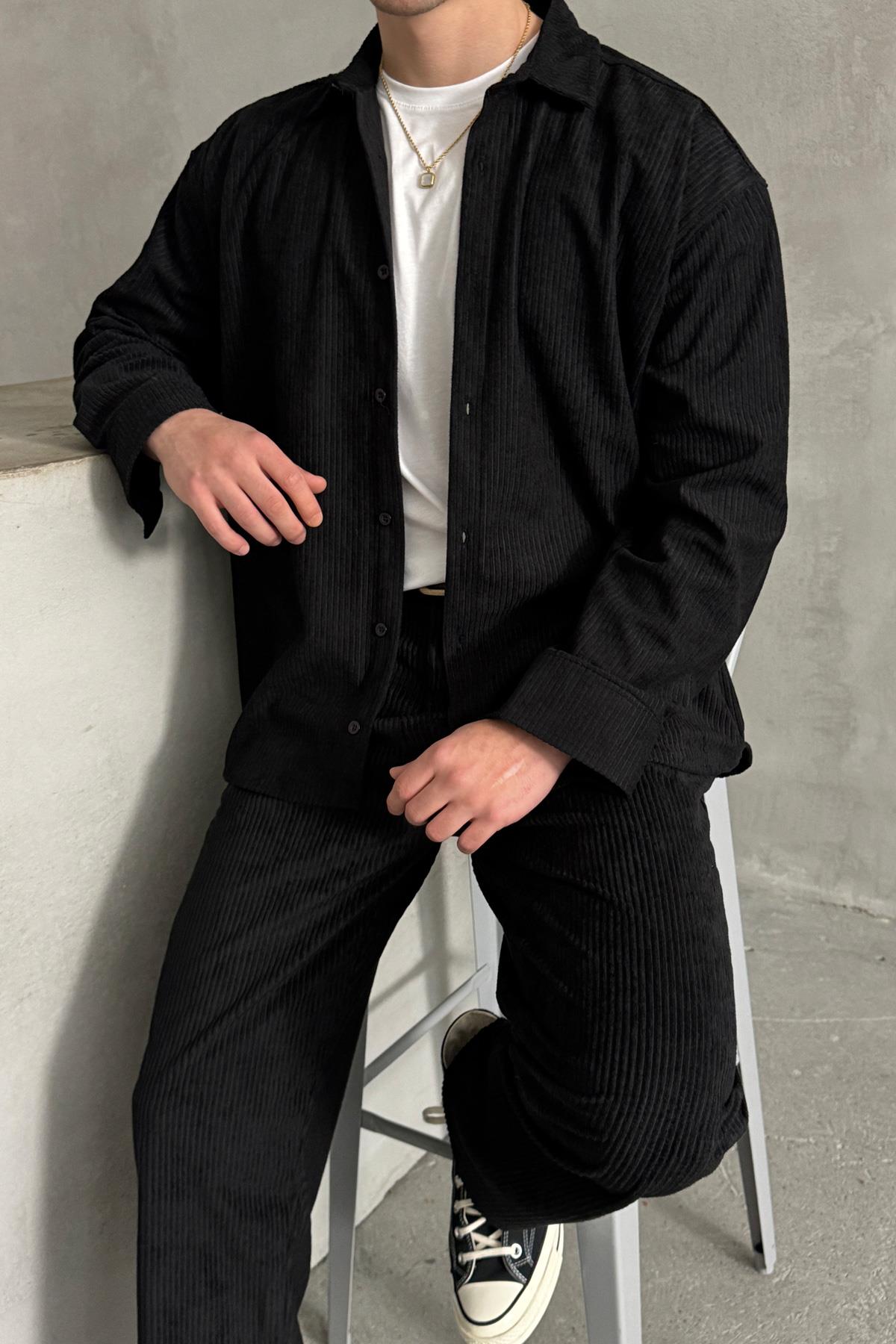 Erkek Oversize Kadife Takım Siyah (HY-30828-SIYAH-S)