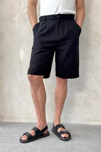 Erkek Pileli Baggy Keten Şort Siyah (HY25YE07005SIYAHS)