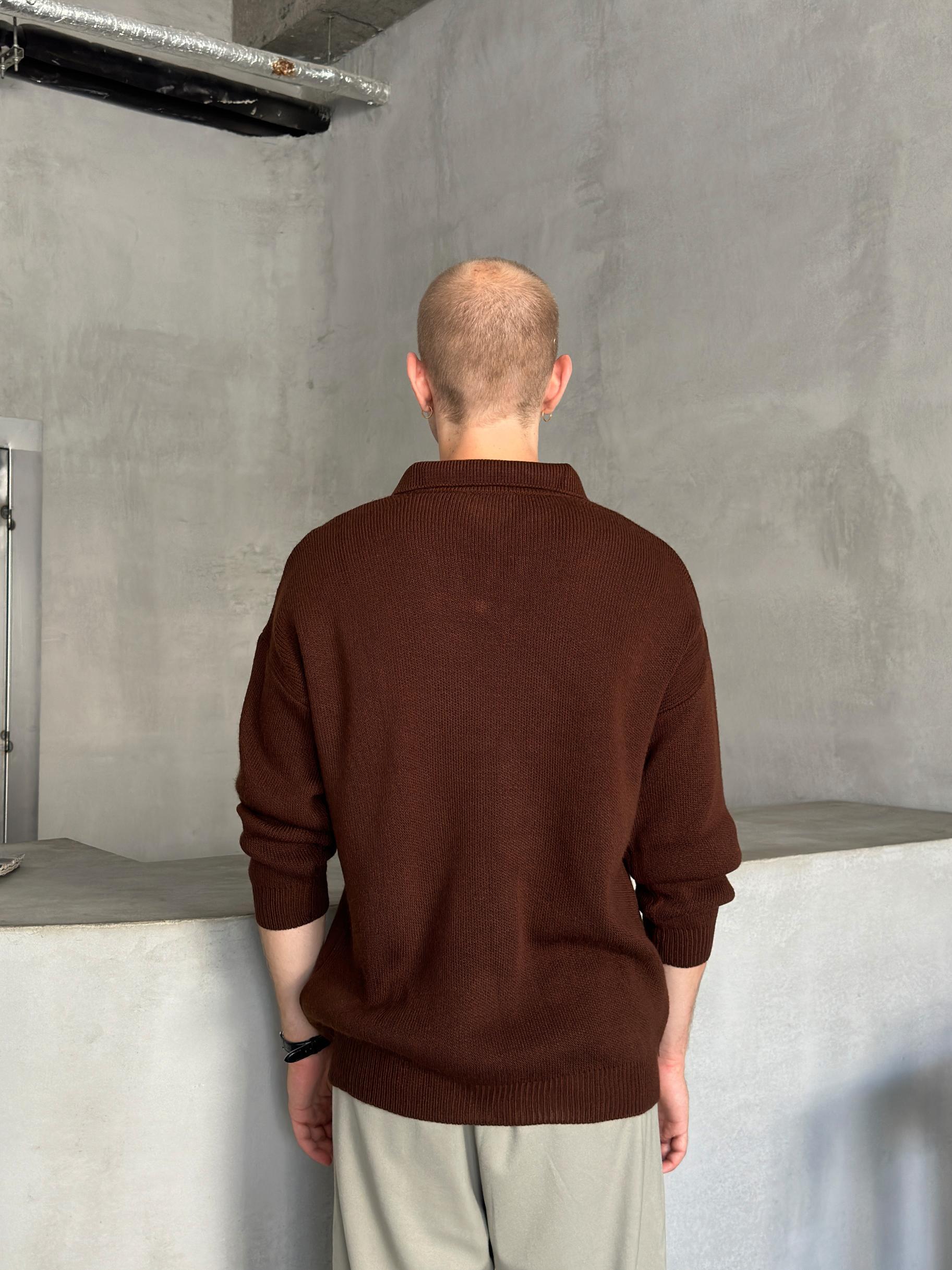 Erkek Polo Yaka Örme Oversize Kazak Kahverengi (HY-52305-KAHVE-S)